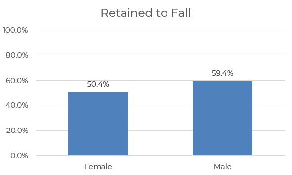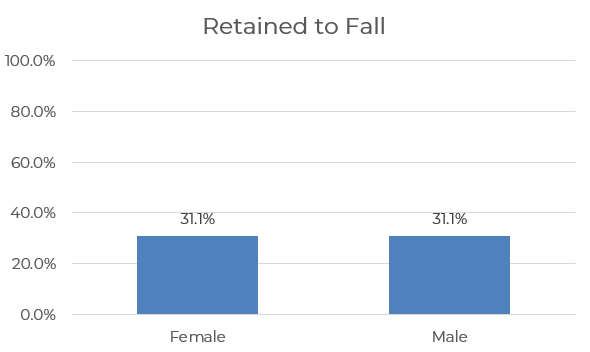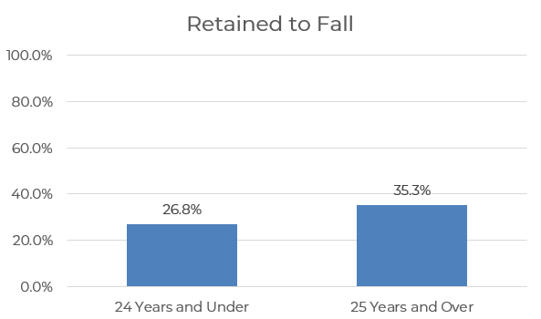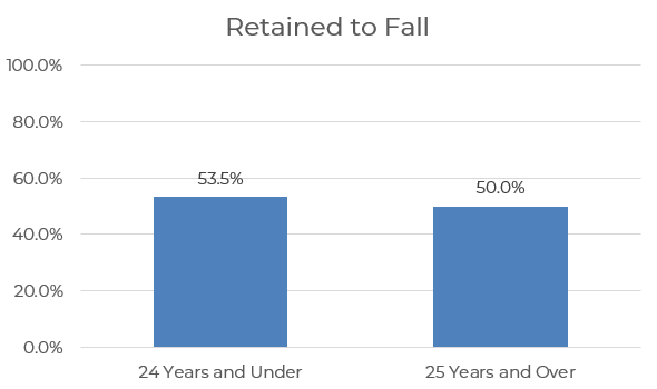 | Fall to Fall Retention - Full-time | 52.4% | >=54.5%: Green, 54.5% - 44.1%: Yellow, < 44.1%: Red | ||