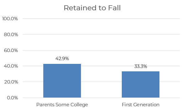| Fall to Fall Retention - Part-time | 42.5% | >=35.1%: Green, 35.1% - 20.5%: Yellow, < 20.5%: Red | ||